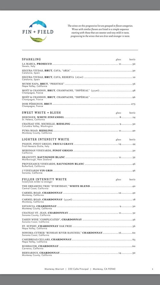 Located in Monterey, CA, Fin Field Restaurant and Bar is a trendy lounge with a relaxed atmosphere that caters to a diverse crowd. With its extensive menu offering many vegetarian options and a full bar serving up delicious drinks, this spot is perfect for casual dining or special occasions. Customers rave about the generous portions, top-notch service, and cozy interior. The diverse range of offerings, from breakfast to prime rib dinners, ensures there is something for everyone to enjoy. Reviews highlight the delicious omelette station, tasty clam chowder, and flavorful pasta dishes. Whether you're looking for a quick bite, a romantic date spot, or a place to unwind with friends, Fin Field Restaurant and Bar is a must-visit destination in Monterey.