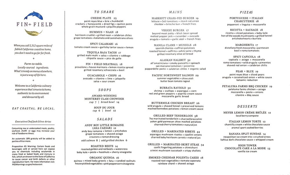 Fin Field Restaurant and Bar Menu